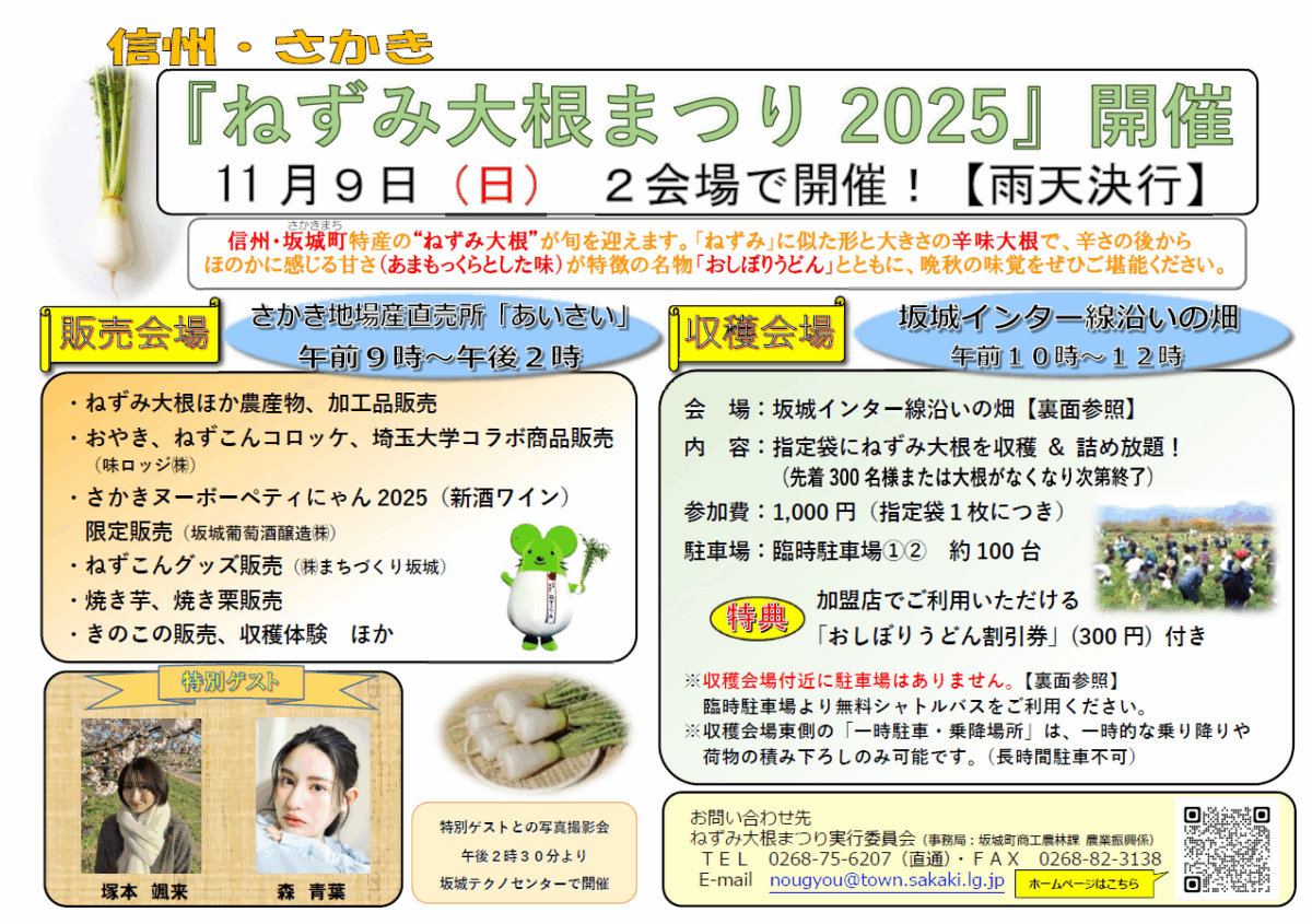 坂城町特産の「ねずみ大根」の収穫祭である『ねずみ大根まつり2025』を11月9日(日)に開催します!